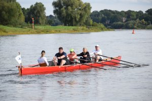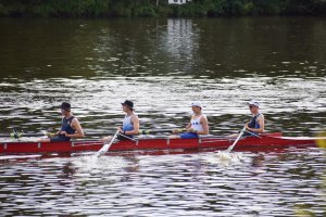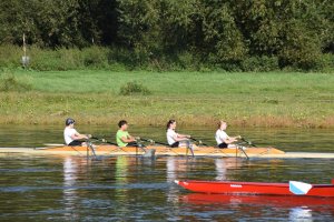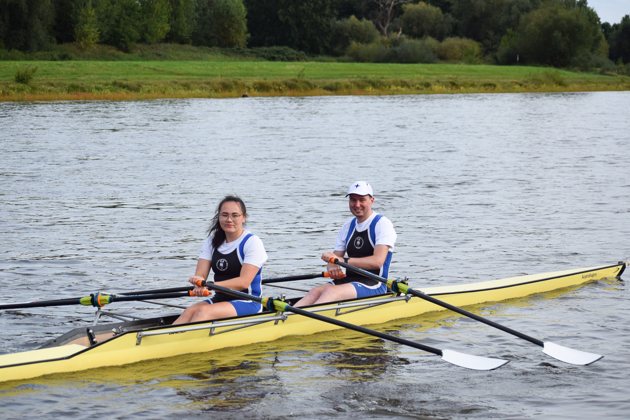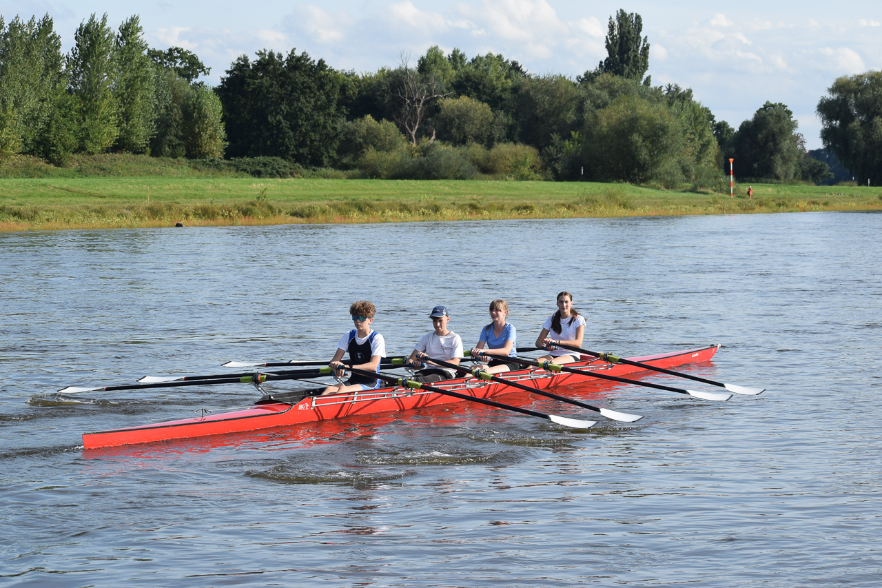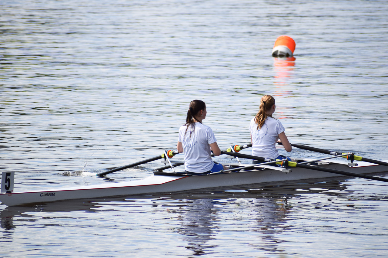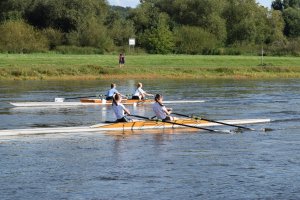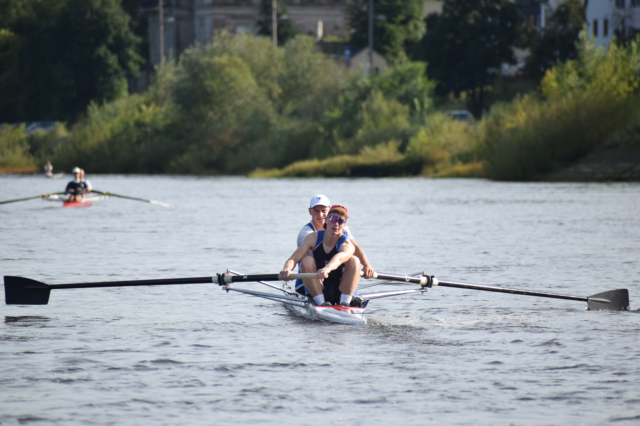 Der Tag hat mit einem Sieg im 4x- in einer Renngemeinschaft mit Tim, Felix H. und zwei Sportlern der USV TUDD erfolgreich begonnen. Maximus und Felix O. sind jeweils im Leichtgewichts-Einer gefahren. Hermine und Finja im JF 2x B sind Dritte geworden.
