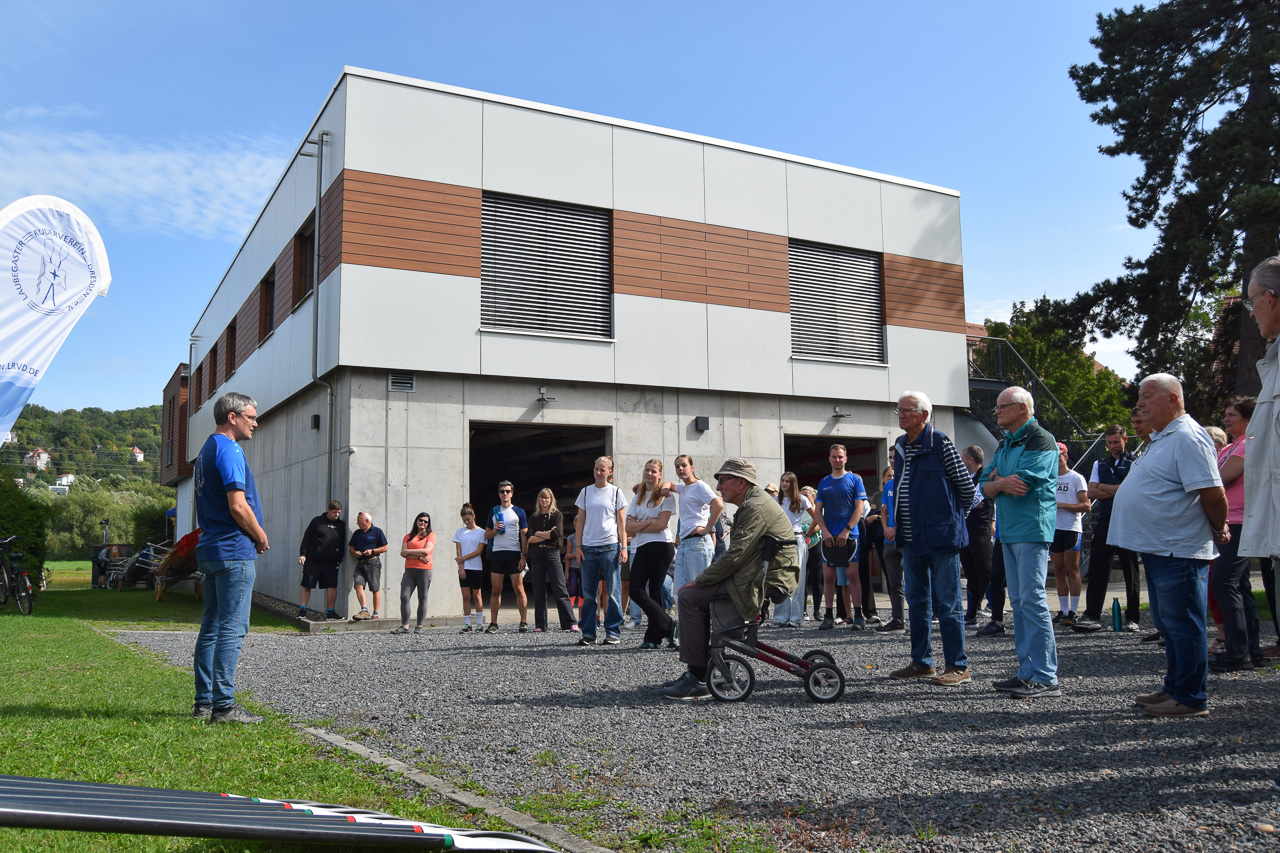 Gegen Mittag wurde das Bootshaus für den zweiten Teil des Festes vorbereitet. Während der Gemeinschaftsraum zum Ort für Speis und Trank wurde, lud die Terrasse bei bestem Wetter zum Verweilen und Beobachten der sportlichen Wettkämpfe ein. Auch der Hof wurde für die offizielle Eröffnung und die spätere Siegerehrung hergerichtet.