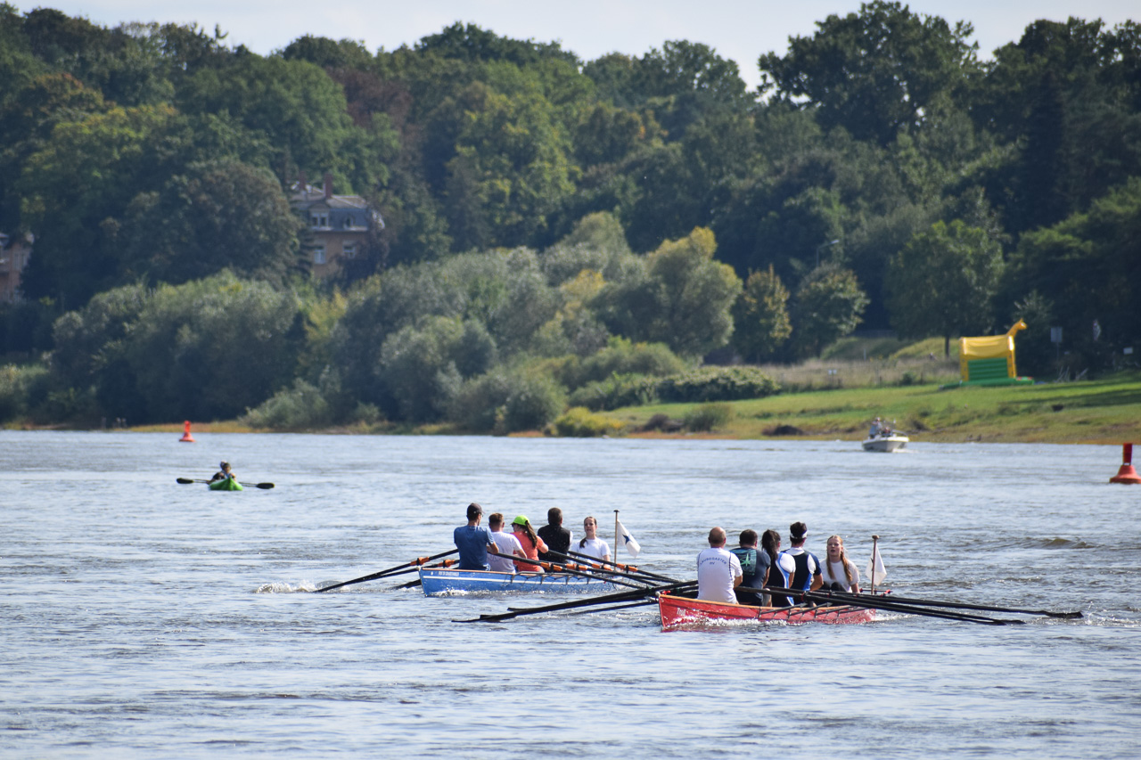 Anschließend ging es mit zahlreichen Groß- und Kleinbooten zur Maria am Wasser, wo wir uns gemeinsam mit der TU Dresden und dem Dresdner Ruderverein getroffen haben.