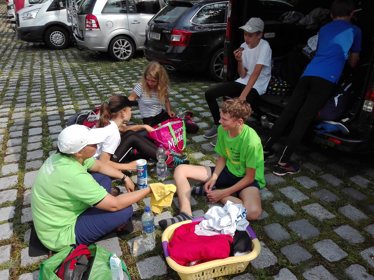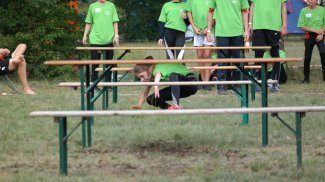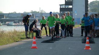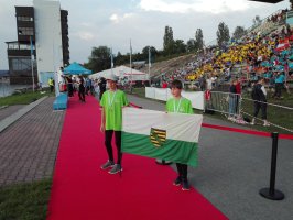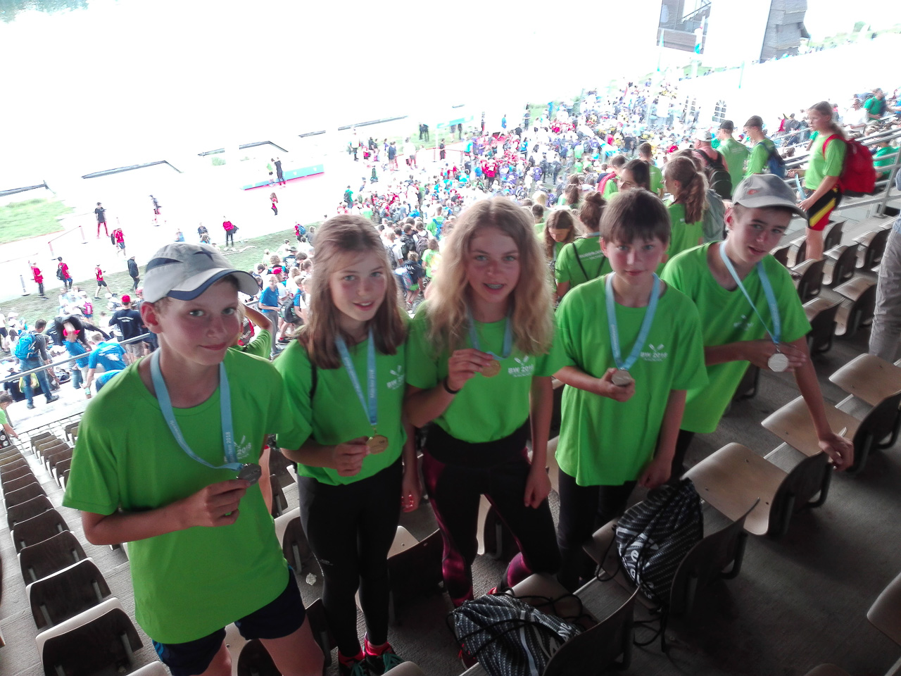 Heute war der allgemeine Sportwettkampf. Jedes Bundesland wurde am Vorabend in 2 Gruppen geteilt und jede Gruppe bestand noch einmal aus vier Riegen mit jeweils zehn oder elf Sportlern. Die erste Gruppe musste heute schon um 5 aufstehen, wohingegen die zweite Gruppe noch bis um 7 schlafen konnte. In der ersten Gruppe waren aus unserem Verein Lukas, David, Oliver und Anna. In der zweiten Gruppe war aus unserem Verein nur Leni. Wir sind dann mit dem Auto zur Regattastrecke gefahren, wo wir erst einmal etwas gefrühstückt haben. Nach der Stärkung haben wir uns schon auf den bevorstehenden Wettkampf gefreut. Unsere Riege begann ca. 10.30 Uhr. Es gab zehn verschiedene Aufgaben: Medizinballübergabe, Reifenhopp, Treppenlauf, Drei-Bein-Lauf, Sackhüpfen, lautester Schlachtruf, Riemenstaffel, Hindernislauf und Wissenstest. Wir waren dann pünktlich zum Mittagessen fertig und danach haben sich alle auf das Betreuerrennen gereut und auf den Tribünen Platz genommen, um zuzusehen. In unserem Sachsen-Vierer war auch Andrea aus unserem Verein dabei und ganz Sachsen hat laut angefeuert. Als es kurz vor 18.00 Uhr war, waren die Tribünen wieder rappelvoll, da gleich die Siegerehrung des allgemeinen Sportwettkampfes losging. Aus unserem Team Sachsen bekamen fast alle Riegen eine Medaille außer eine, aber sie waren sogar dritter Platz. Die Riege mit Lukas und Oliver waren auf dem 1. Platz, die Riege mit David war ebenfalls auf dem 1. Platz, die Riege mit Anna auf dem 2. Platz und die Riege mit Leni war auch auf dem 1. Platz. Als alle wieder in unserer Schlafunterkunft waren, waren alle schon sehr aufgeregt auf die bevorstehende Bundesregatta am nächsten Tag.