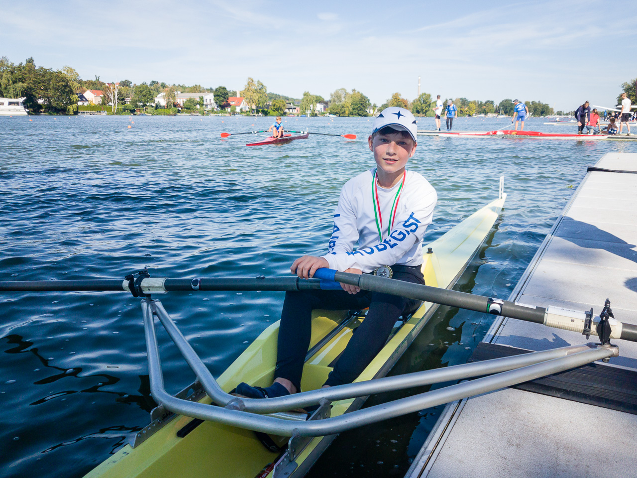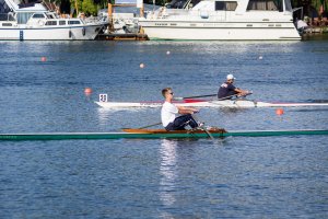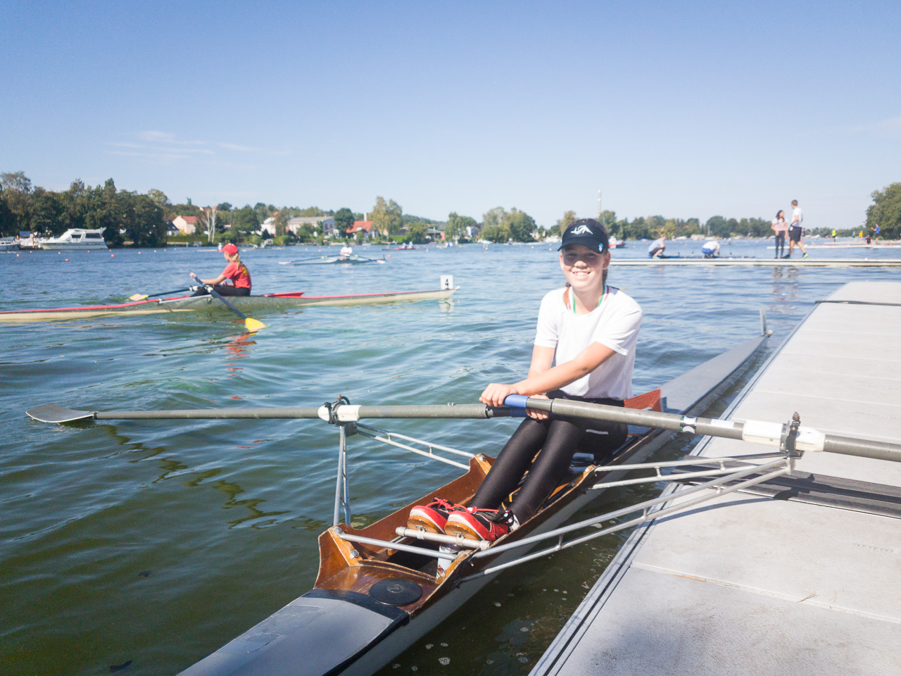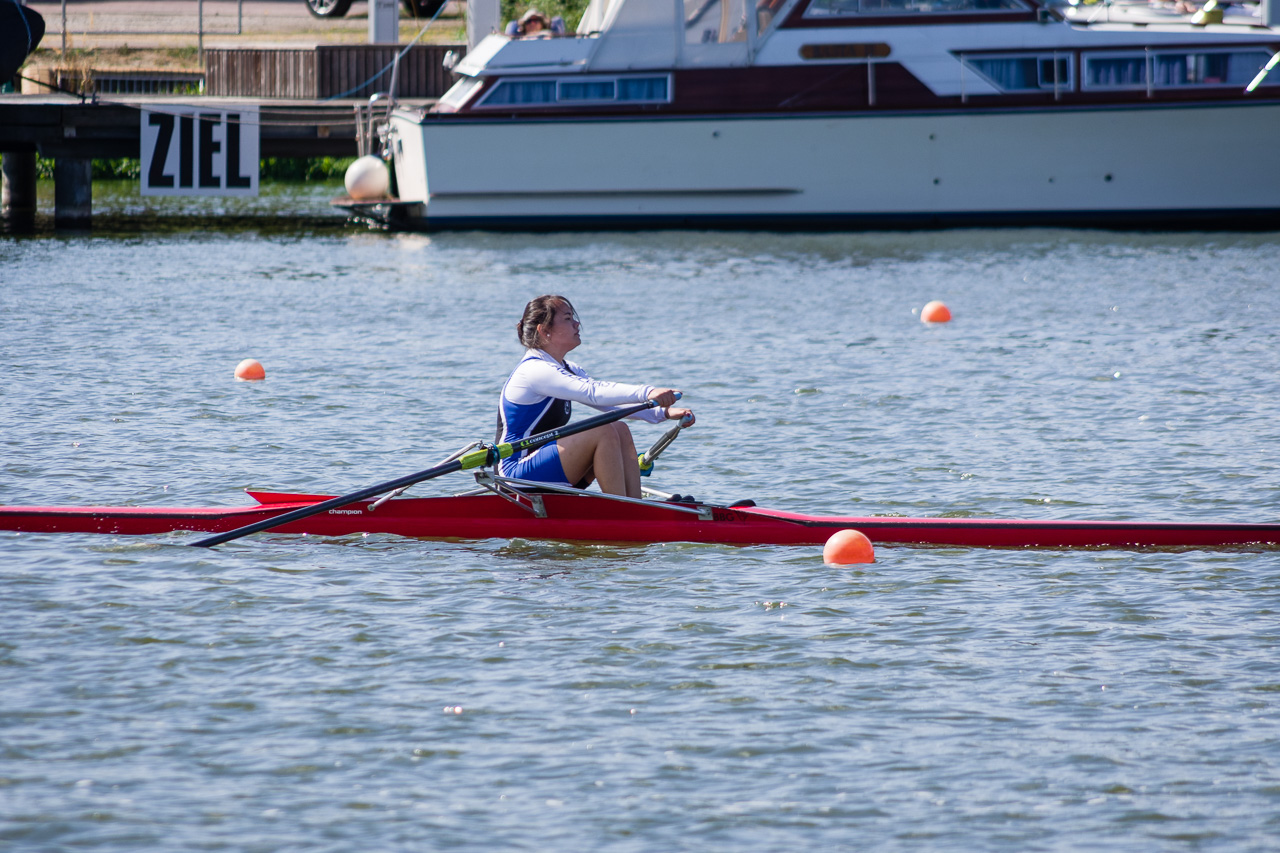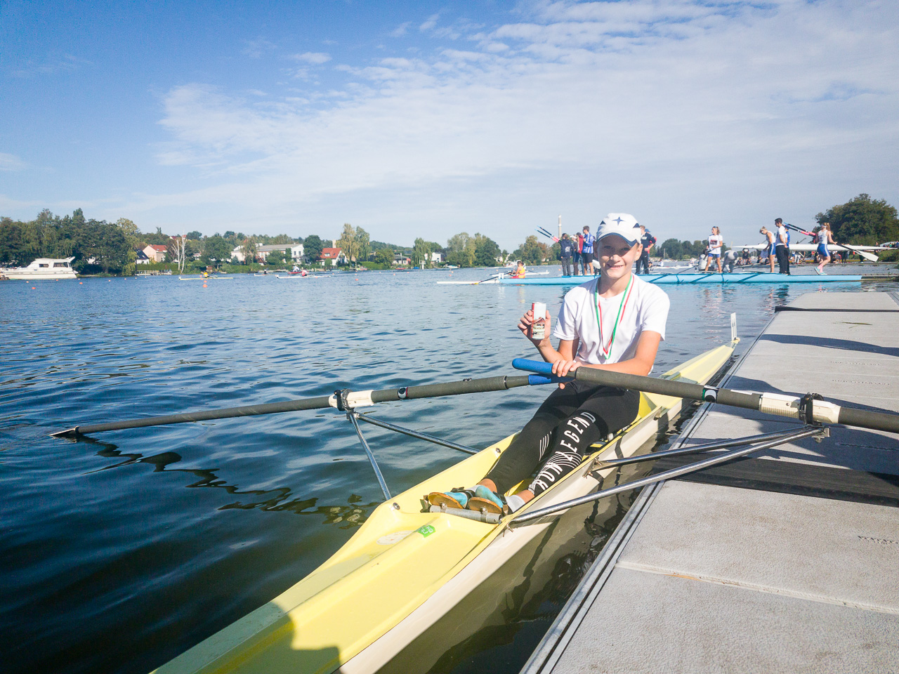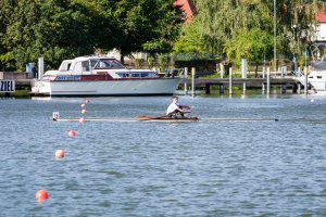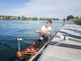 Der Regattatag am Sonntag startete für die Sportler des LRVDs schon um 6 Uhr, als wir unser Nachtquartier räumten und um 7 Uhr an der Regattastrecke eintrafen. Bei Sonnenaufgang (also sehr zeitig, wie es sich für Ruderer gehört ;-)) waren wir die Ersten auf dem Wasser, um ein paar Trainingskilometer zu fahren und später frühstückten wir im Freien. Tagsüber wurden dann bei schönstem Sonnenschein die 500 m gefahren. Die Ergebnisse waren wieder durchwachsen, denn vom 1. bis zum 5. Platz war alles dabei. Nachdem Anton als Letzter von uns gestartet war, haben wir den Hänger beladen, uns noch ein leckeres Eis gegönnt und uns auf den Heimweg gemacht. Um ca. 19.30 Uhr trafen wir dann im Bootshaus auf der Avenariusstraße ein und mit Hilfe einiger Eltern schafften wir es, den Hänger schnell zu entladen. Am späten Abend konnten alle dann in den restlichen Sonntagabend entlassen werden.
