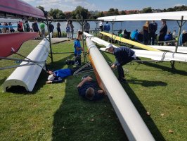 Am Freitag, den 07. September 2018 fuhren wir nach einer langen Sommerpause endlich wieder zu einer Regatta. Mit dem Auto und Autobus ging es um ca. 16 Uhr mit Oliver, Thomas, David, Lukas, Anna, Leni, Conrad, Anton, Mai Linh und Frau und Herr Haaser nach Werder. Da wir erst gegen 19 Uhr auf der Halbinsel in Werder ankamen, war es aufgrund der Helligkeit nur noch möglich, die Boote vom Anhänger abzuladen und uns auf den Weg in unser Nachtquartier für die nächsten Tage zu begeben.