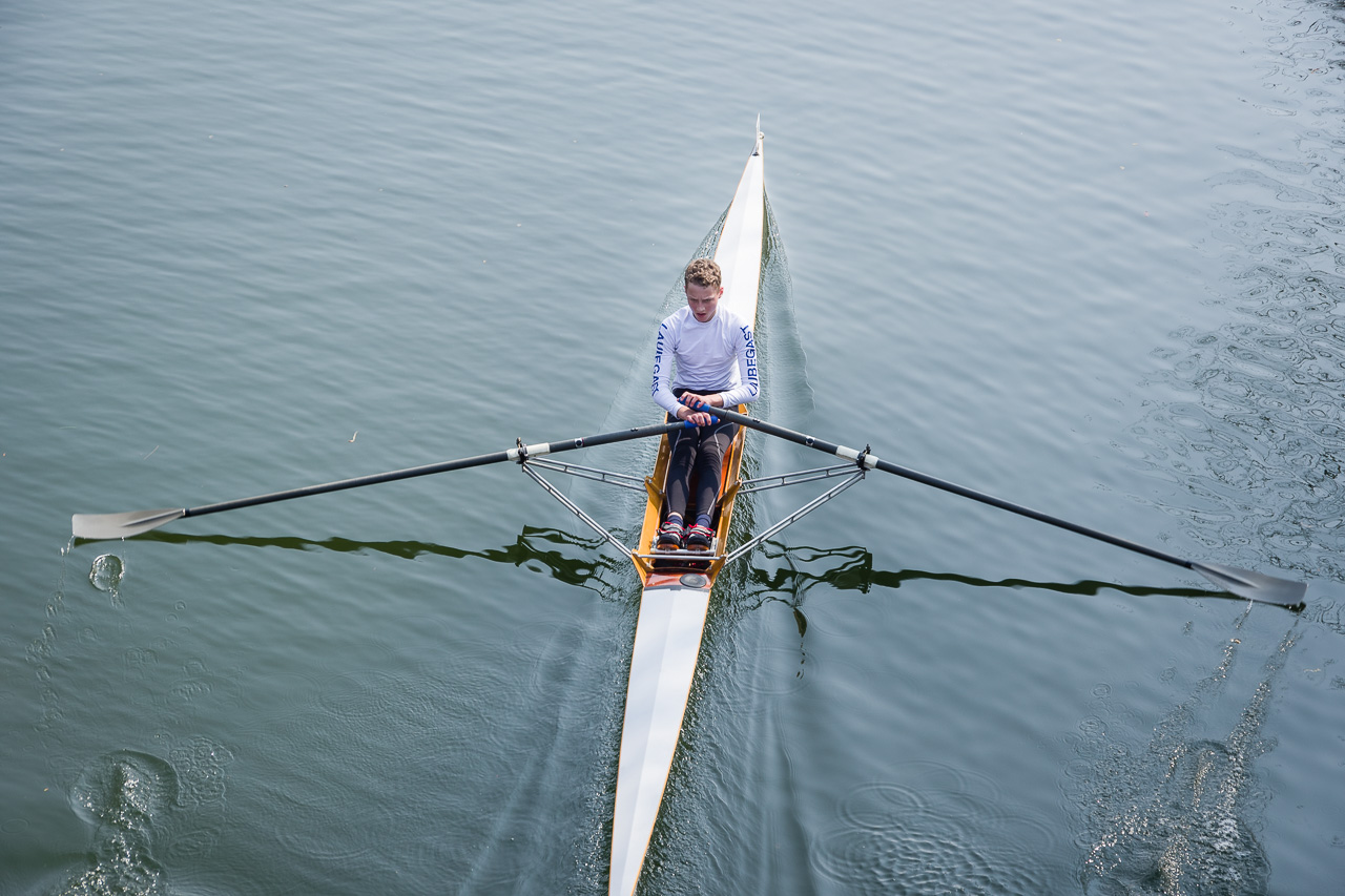 Langsam aber sicher traute sich die Sonne raus und der Nebel verschwand. Bei guten Bedingungen und hochmotiviert ruderten alle Sportler so schnell sie konnten, um zu zeigen, wie fleißig sie im Winter trainiert haben. Durch das Anfeuern von Andrea auf dem Fahrrad, Frau Haaser und den Sportlern vom Ufer aus, vergingen die 3000 m für alle etwas leichter.
