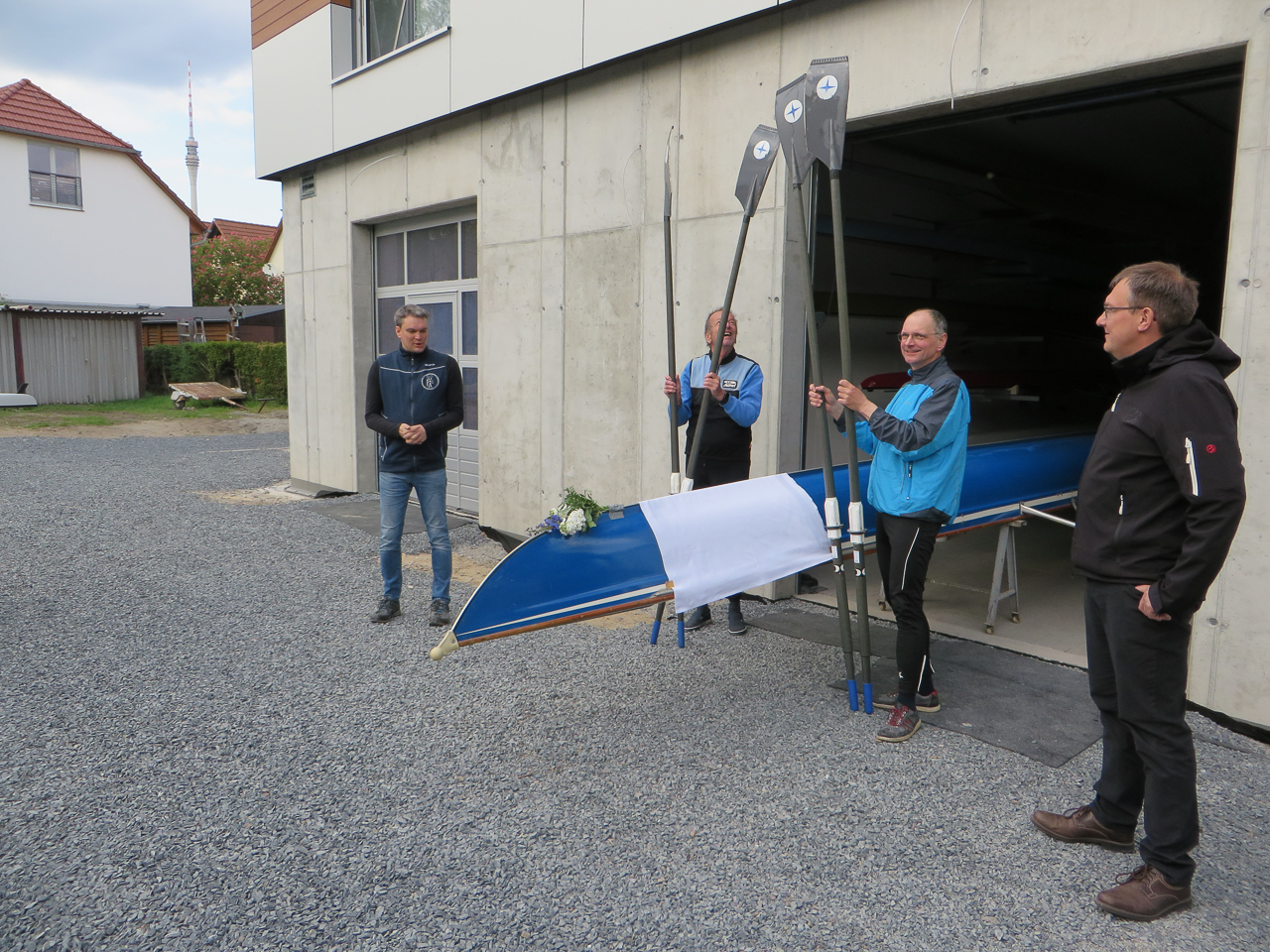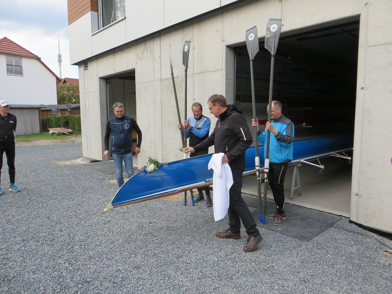 Ein besonderer Dank des Vorstandes ging an Ina, die sich um den Kauf des gebrauchten Gigs von einem anderen Ruderverein gekümmert und einen guten Deal ausgehandelt hatte. Unser Verein hat dabei zusätzlich noch einen Renndoppelzweier geschenkt bekommen, der jedoch noch aufgearbeitet werden muss. Daher wird er erst getauft, wenn er wieder fahrbereit ist. Das heißt aber für uns: wir dürfen uns auf eine weitere Bootstaufe in nächster Zeit freuen!